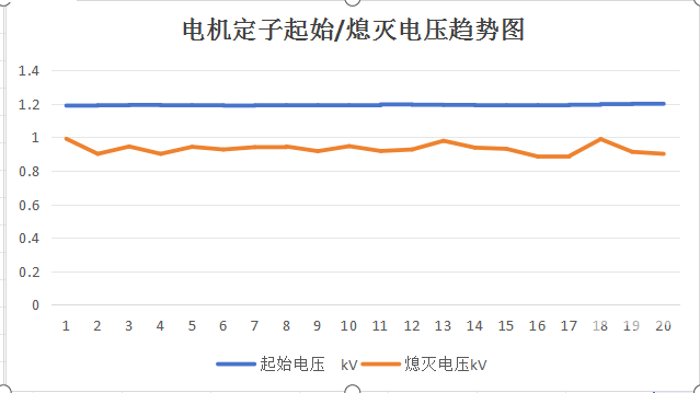 根据测试结果的起始/熄灭电压趋势图,可判断多轮测试后,被测品局部放电性能较稳定。