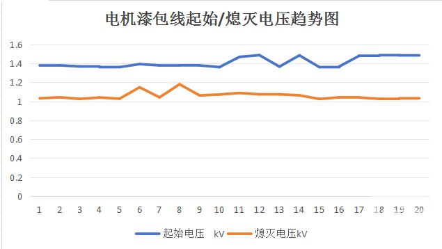 对客户的样品进行局部放电测试,查看20次测试起始/熄灭放电电压一致性